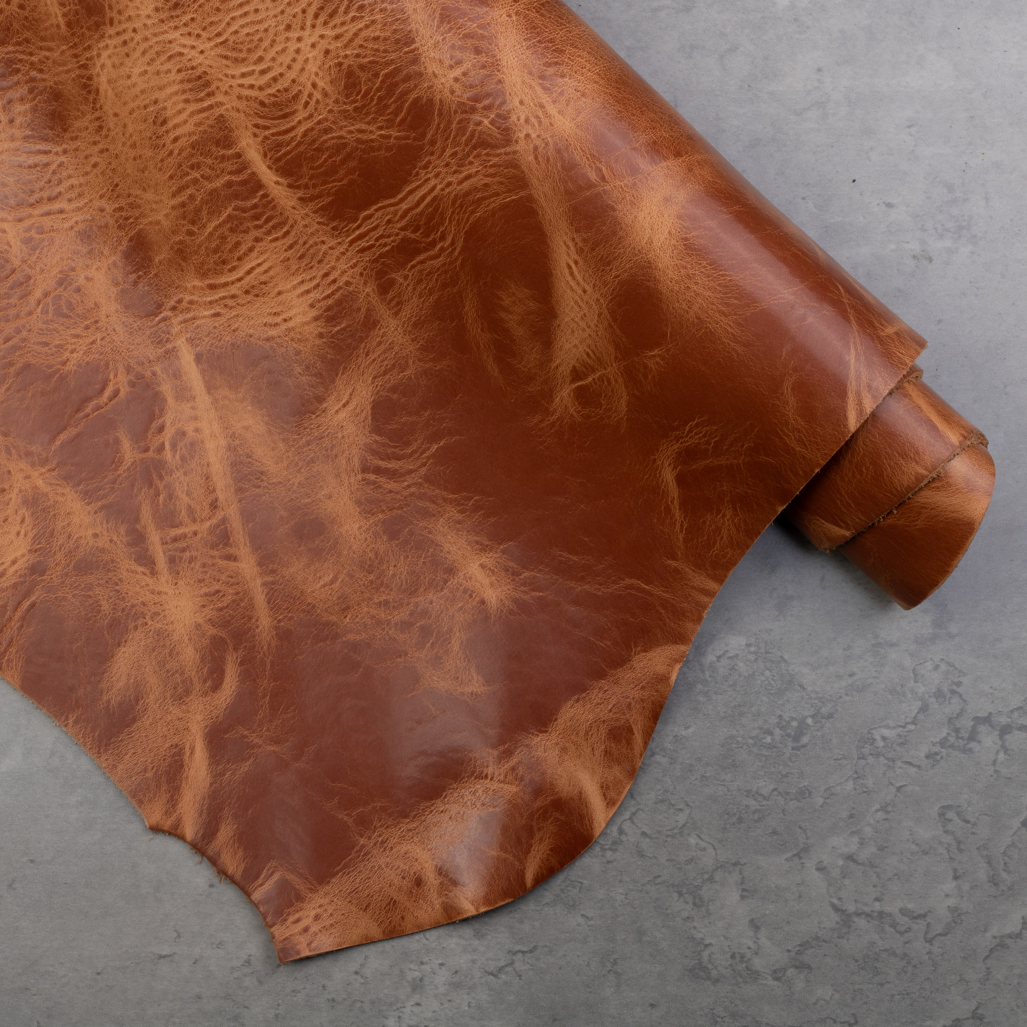 “Leather from Tannery Conceria 800, crafted using traditional vegetable tanning methods. This pull-up leather features a rich, shiny finish that enhances its natural character, revealing lighter undertones when stretched or folded.”